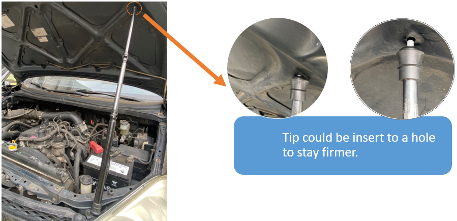 - The stepless, extendable design allows the mechanic to hold the hood in any preferred position.